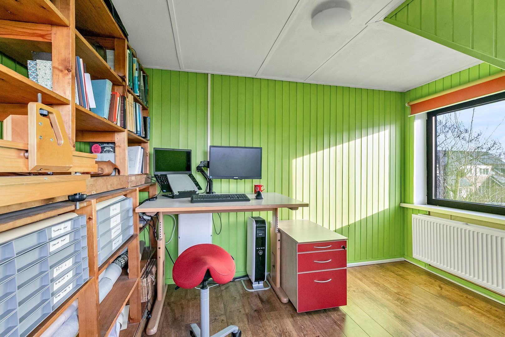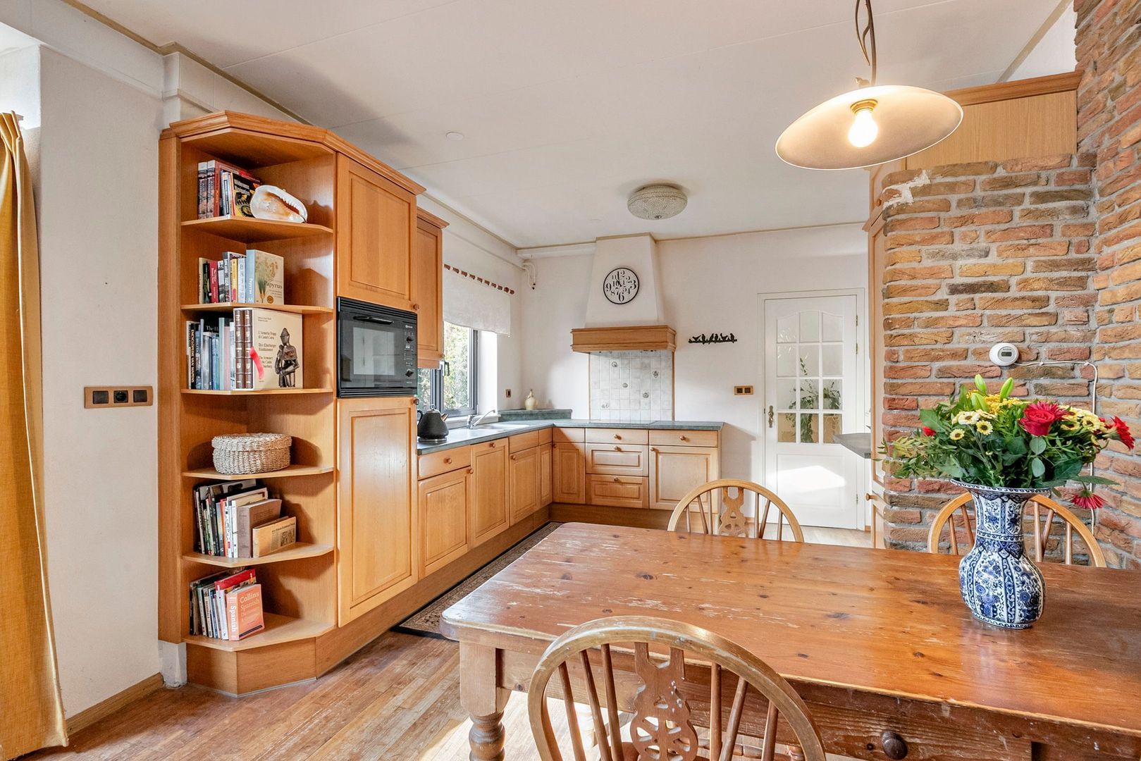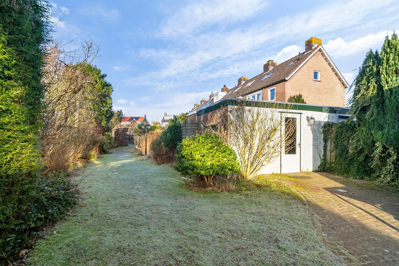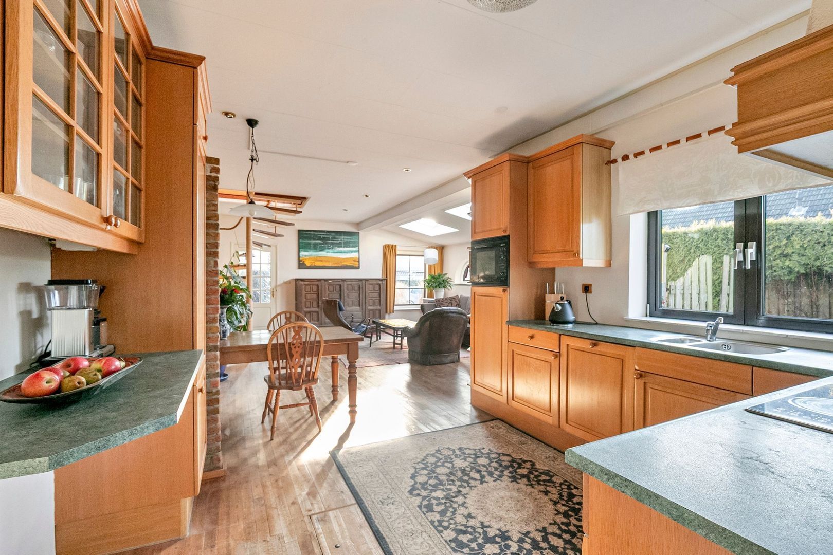 De woning heeft een uitbouw aan de zijkant waardoor er een prettige woonkamer is ontstaan. Vanuit hier geven openslaande deuren toegang op de weelderige tuin, het zorgt ook voor een leuk uitzicht. Deze uitbouw heeft 2 grote dakramen wat zorgt voor een goed lichtinval. De woning is deels onderkelderd en deze kelder biedt veel bergruimte.